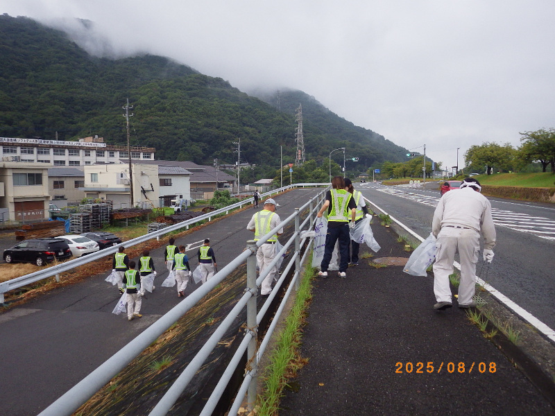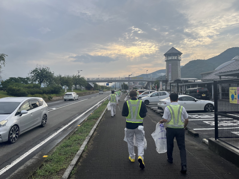 今年も「四国の道路をもっときれいに、気持ちよく」という思いのもと、当社は貞光ゆうゆう館を起点に周辺の道路掃除を行いました。