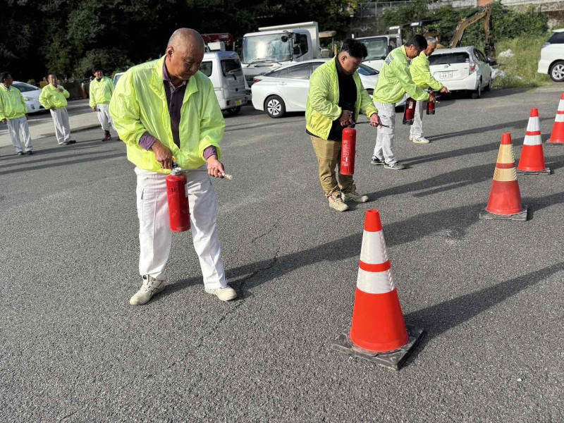 この訓練は「エコアクション21」の取り組みの一環であり、火災発生時の危険性を理解し、社員一人一人の防火意識を高めることを目的としています。正しい対処方法を身につけることで被害を最小限に抑え、事業の早期復旧にもつながります。