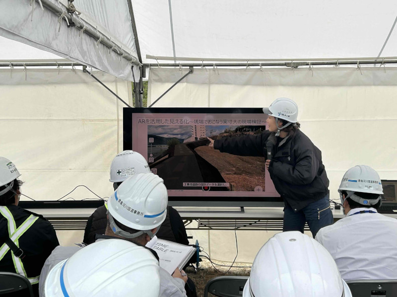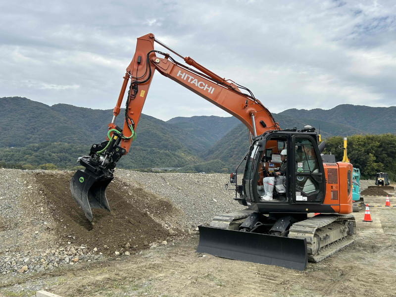 当日は、ARを活用した現場での活用方法や今後の展望について説明を行ったほか、生産性及び安全性の向上が図れる最新アタッチメント「チルトローテータ」を搭載した重機やラジコン操作による建機の操作体験を実施しました。