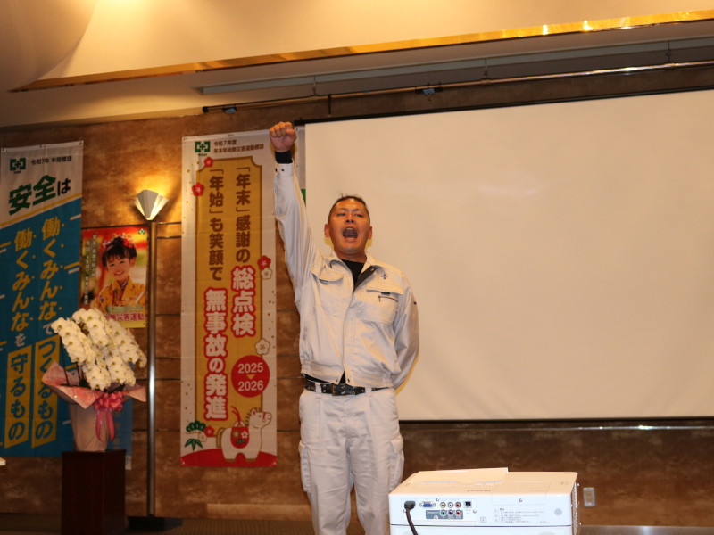 令和8年の安全スローガン『なれ作業 気持ちのゆるみが 事故のもと!』を胸に、社員一人ひとりが安全最優先の姿勢で災害防止に努め、日々の業務に取り組んでまいります。