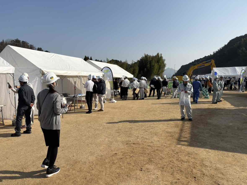 国土交通省四国地方整備局 松山河川国道事務所様が「今治道路 今治朝倉IC建設現場」にて開催されたインフラDX見学会に参加いたしました。